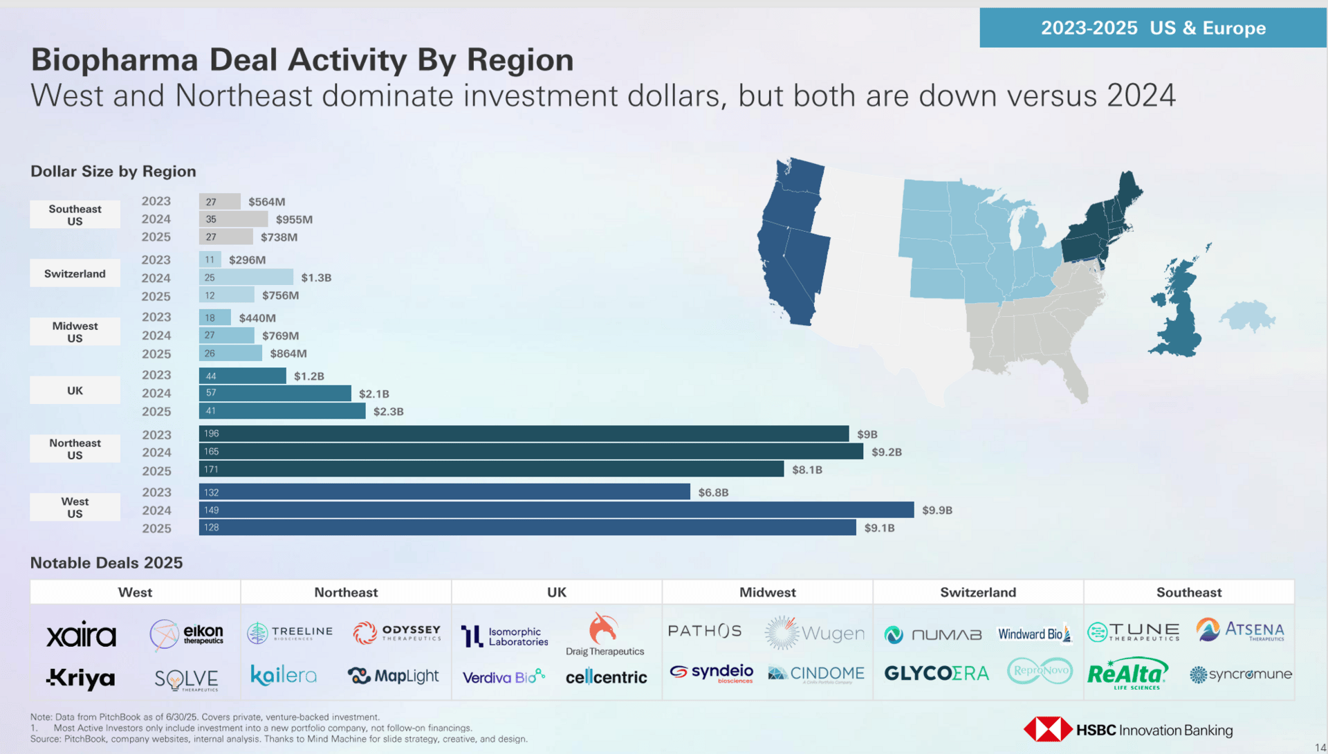 Why then show biopharma deals? Mainly so I can note that Kentucky is South(east), not Midwest as depicted. The U.S. Census Bureau knows it. Dwight Yoakam knows it. C’mon HSBC.